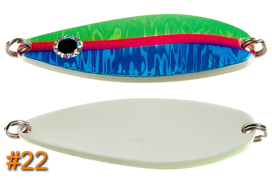 Блесны HIGASHI Akiaji spoon 45g – тяжелые спиннинговые приманки среднего размера, предназначенные для ловли кеты как в реке, так и в море на поплавочную снасть.