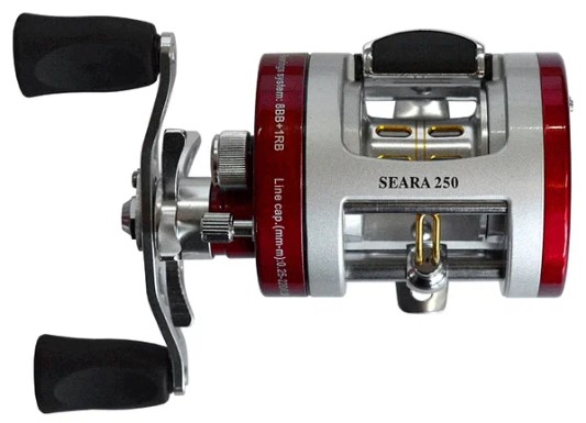 Серия мультипликаторных катушек Seara от производителя GRFISH отличаются высоким качеством и надежностью. Корпус и шпуля выполнены из алюминия. Катушки Seara оснащены мгновенным стопором заднего хода, системой нажатия кнопки для заброса и центробежной системой торможения.