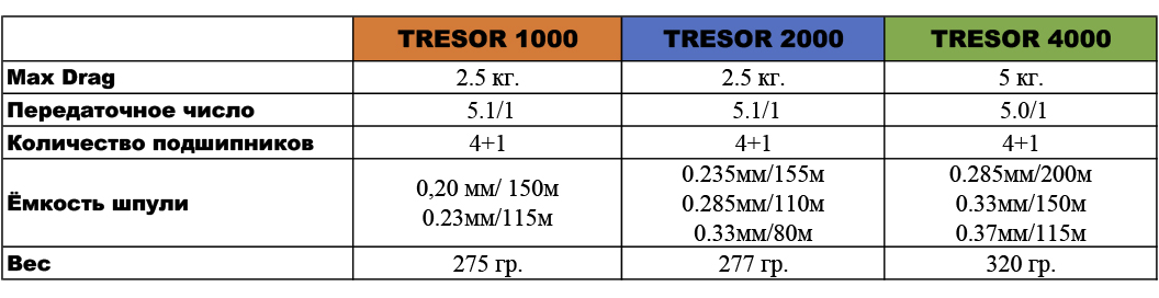 Катушка Tresor 1000 (4+1BB, 0.20мм/150м, 0.23мм/115м, 5.1:1, 275гр)