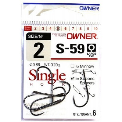 Крючок #2 для блёсен OWNER SINGLE S-59, 6 шт.