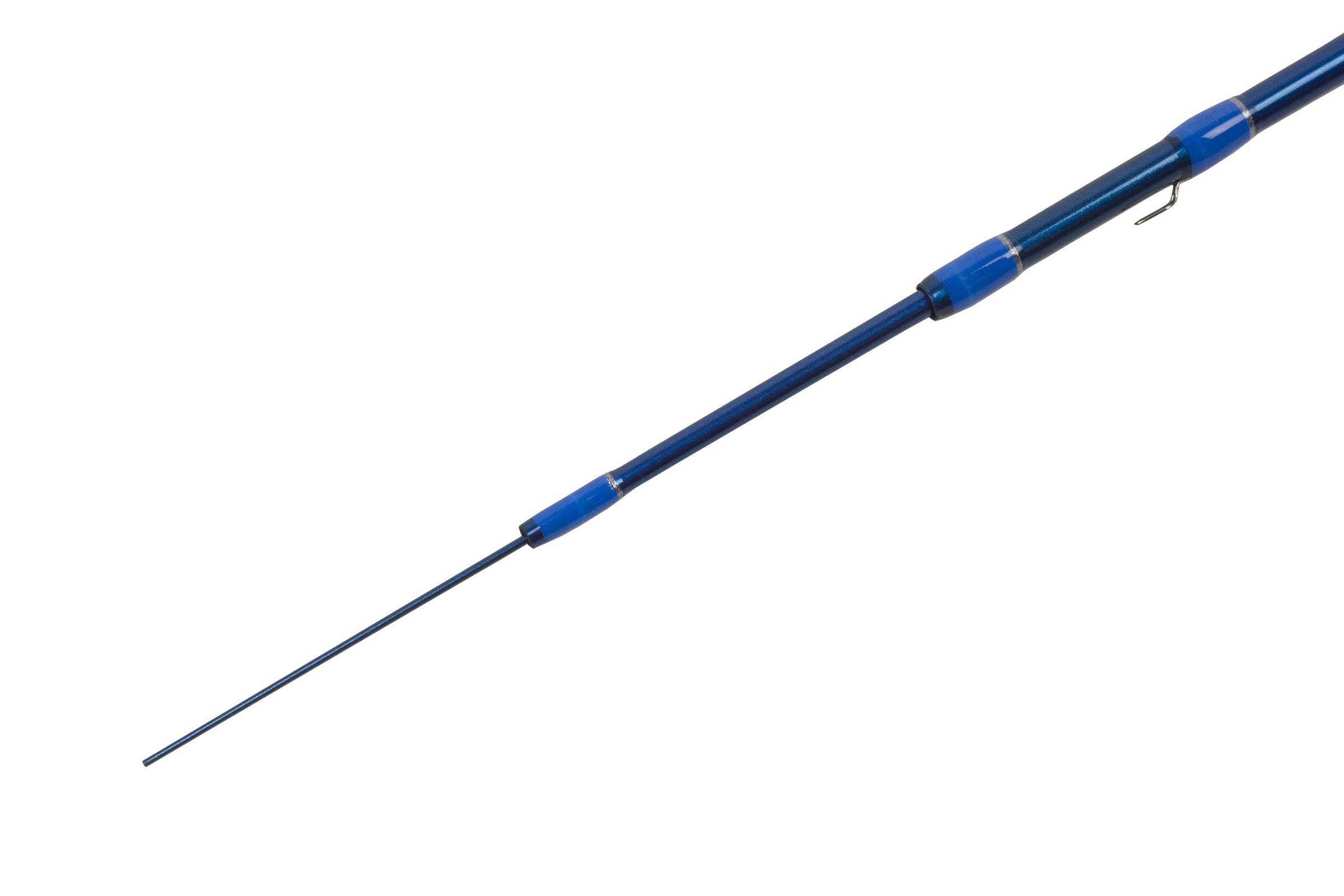 Карбоновый бланк удилища выполнен из карбона покрытого лаком. Все модели оснащены резиновым кольцом для крепления блесны, а также шестью крючками из нержавеющей стали для намотки лески.