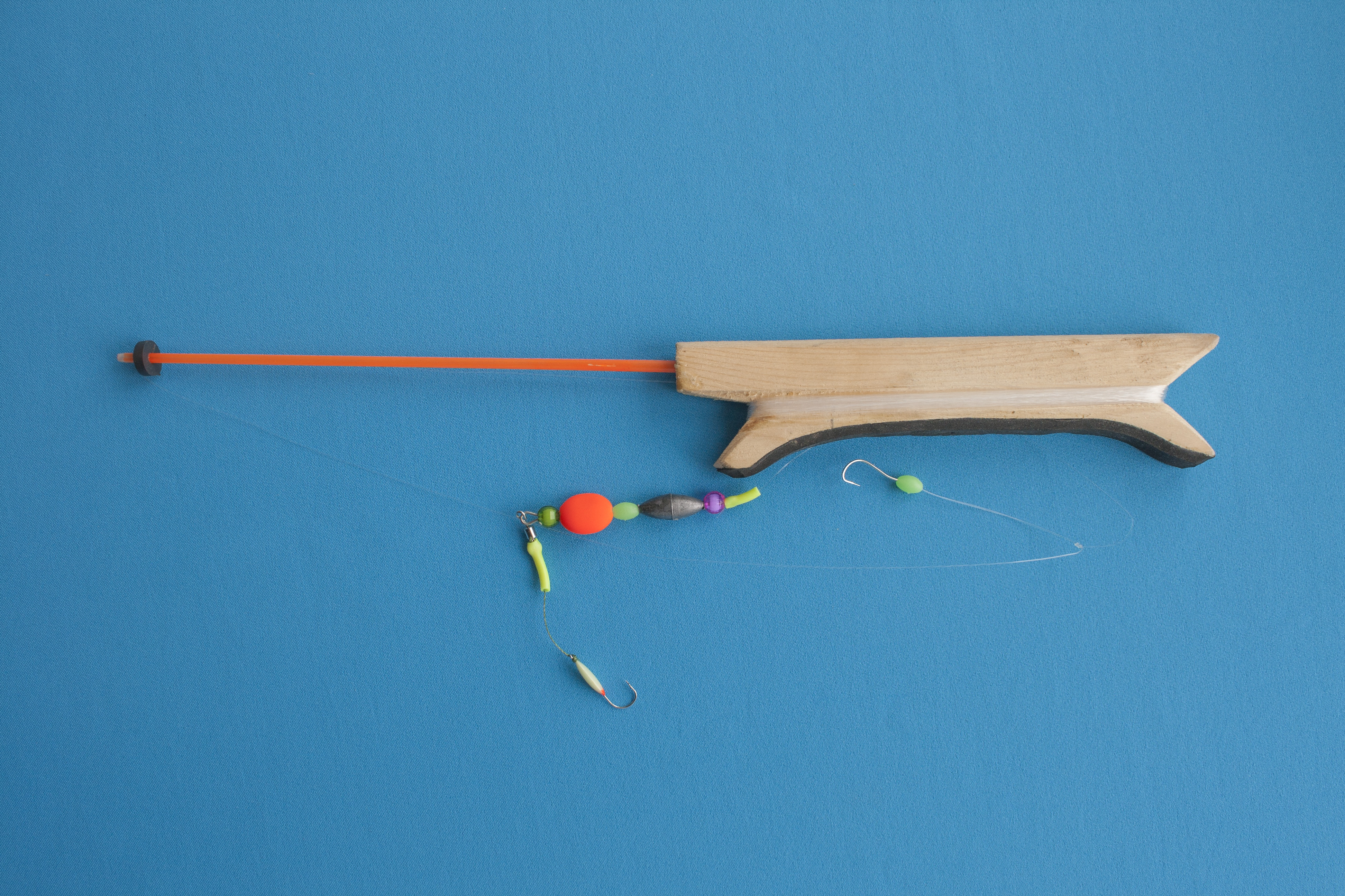 Удочка зимняя оснащенная с поплавком, коромысло с 2 крючками, грузило, леска, РсН