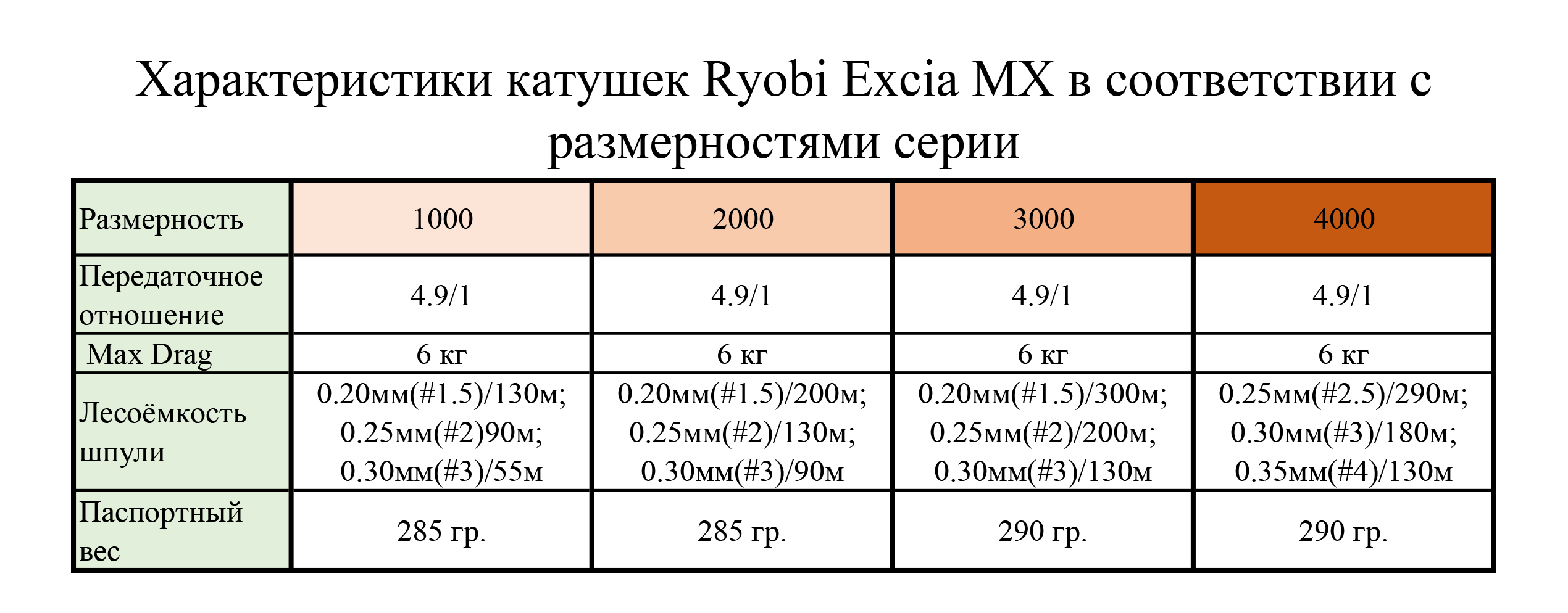 Катушка Excia 1000 (8+1BB, 0.20мм/130м, 0.30мм/55м, 4.9:1, 285 гр, бескон. винт)
