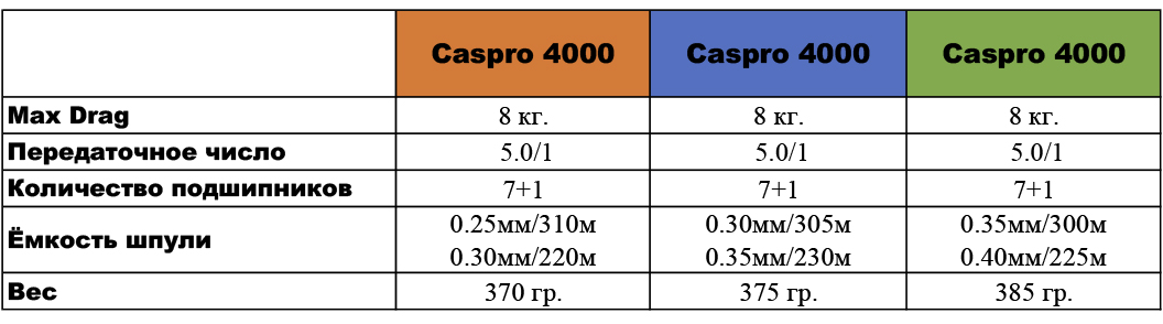 Катушка Caspro 4000 (7+1BB, 0.25мм/310м, 5.0:1, 370гр, байтраннер)