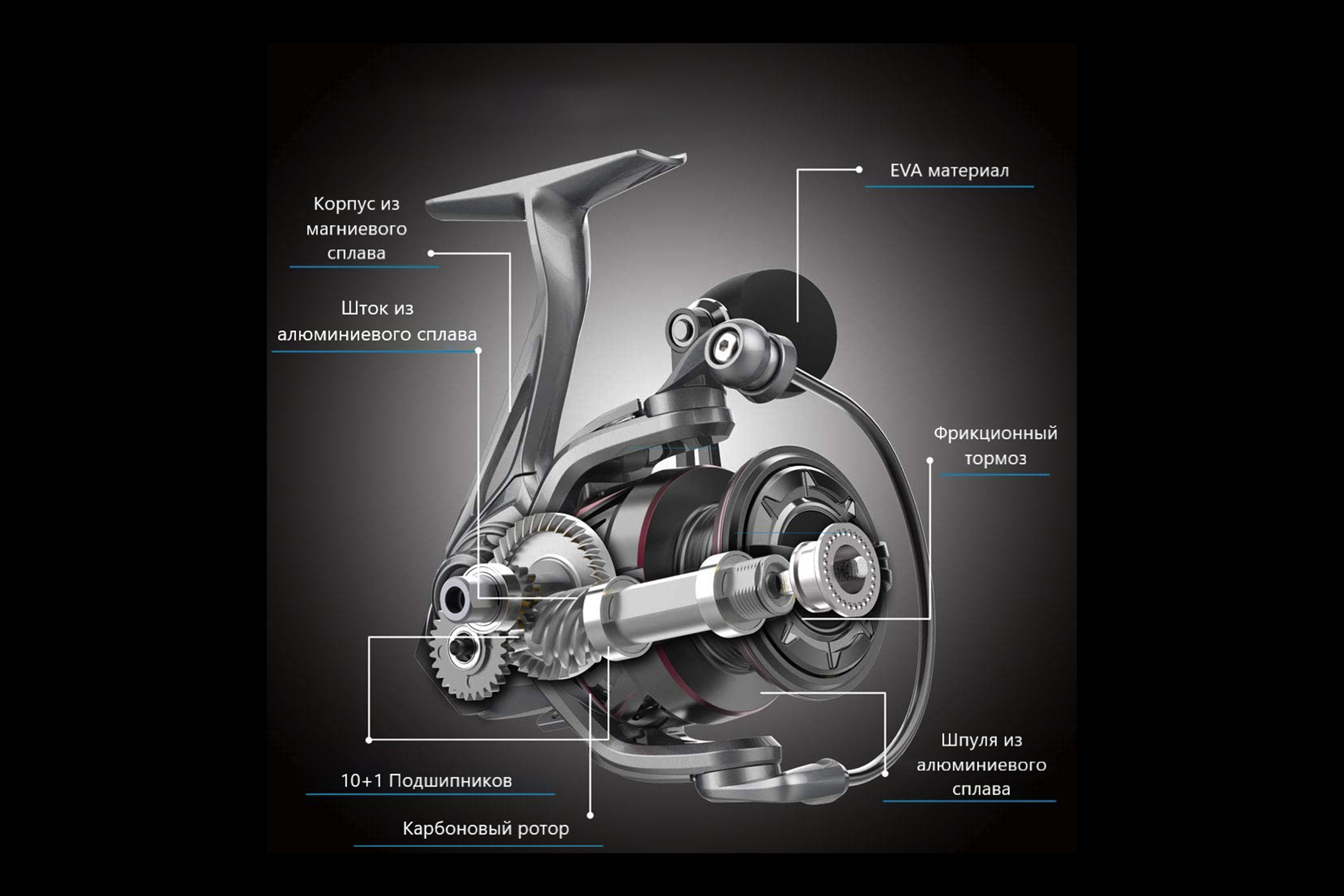 Катушка HADERA 6000 (10BB+1RB, 4.3:1, #5(0.37мм)/200м, 15кг, 478гр.)