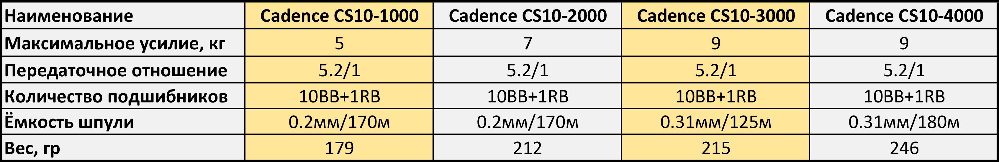 Катушка Cadence CS10-2000 MG (10+1, 7 кг, 5.2:1, 0.23мм/110м, 71см, 212 гр)
