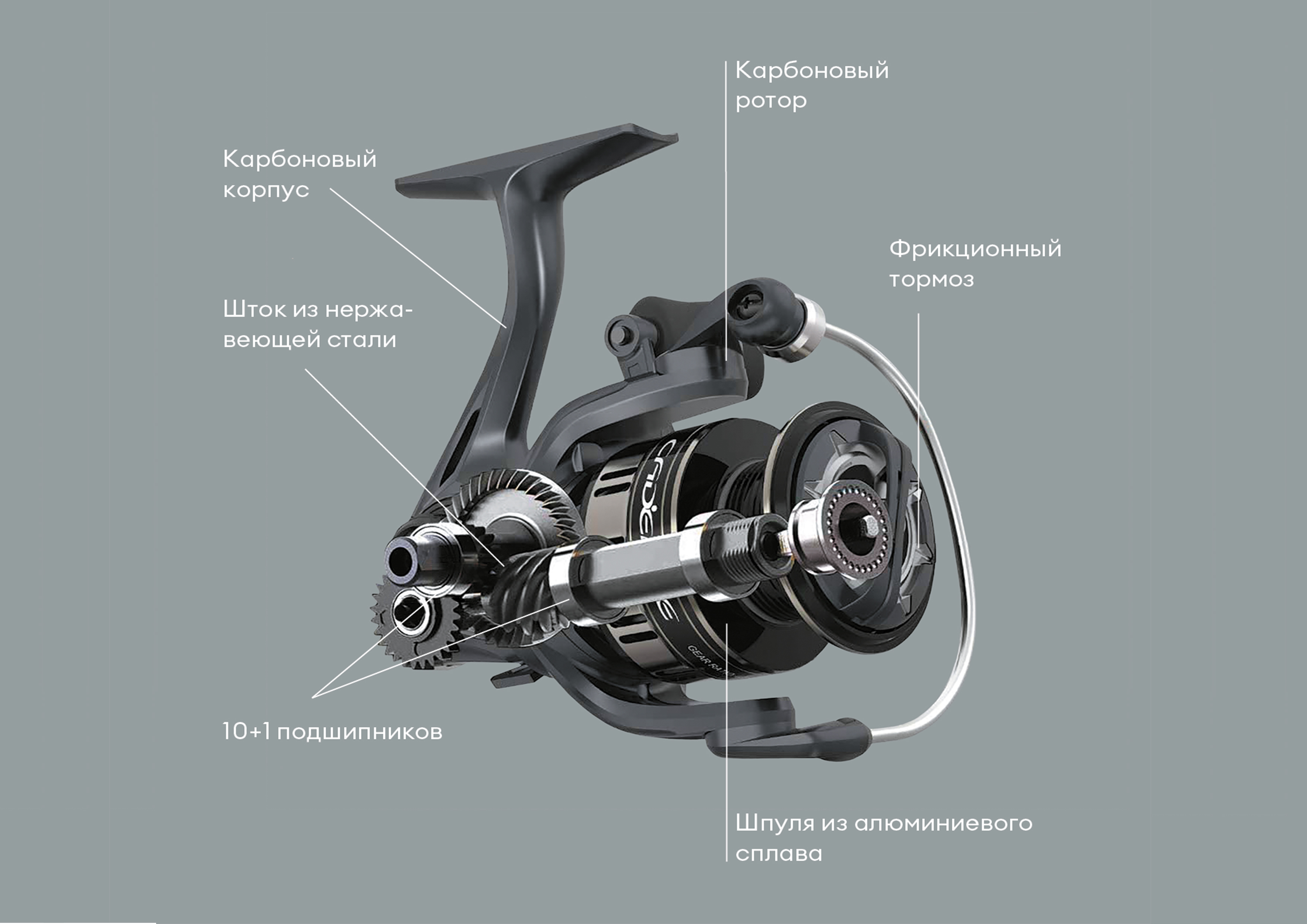 Катушка Cadence CS10-5500 Long Cast (6+1, 11 кг, 4.8:1, 0.3мм/410м, 89см, 561 гр)