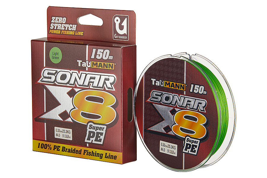 Леска плетёная TauMANN Sonar PEx8 0.26мм/#2.5 40.5LB (18.4кг), 150 м, Light Green