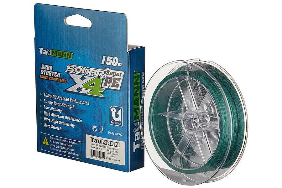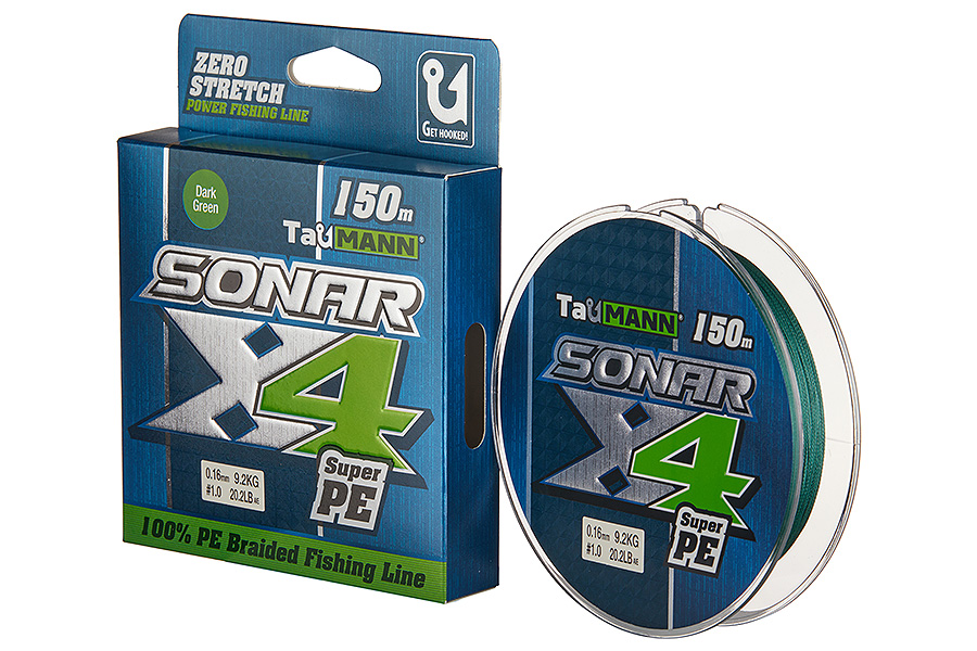 Шнур плетеный #1.0/0.16мм 9.2кг (20.2LB) TauMANN Sonar PEx4, 150 м, Dark Green